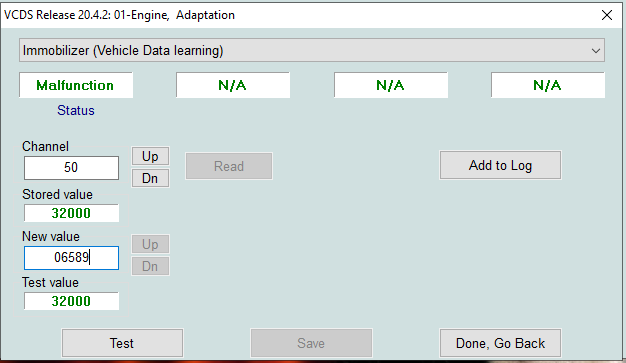 Standardowa procedura opisana na stronie RossTech nie działa. Przy próbie podmienienia PINu w nowym liczniku dostaję w vcds odpowiedź 'Malfunction'.