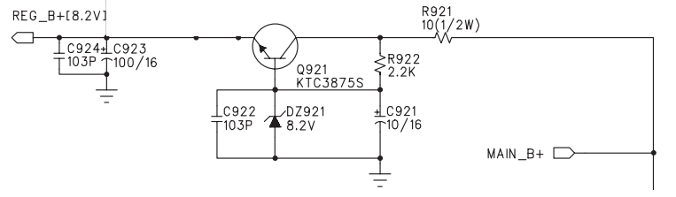 Objawy wskazują na uszkodzenie stabilizatora napięcia 8,2V Proszę zbadać diodę DZ921 oraz tranzystor Q921.Podać napięcie na kolektorze Q921.