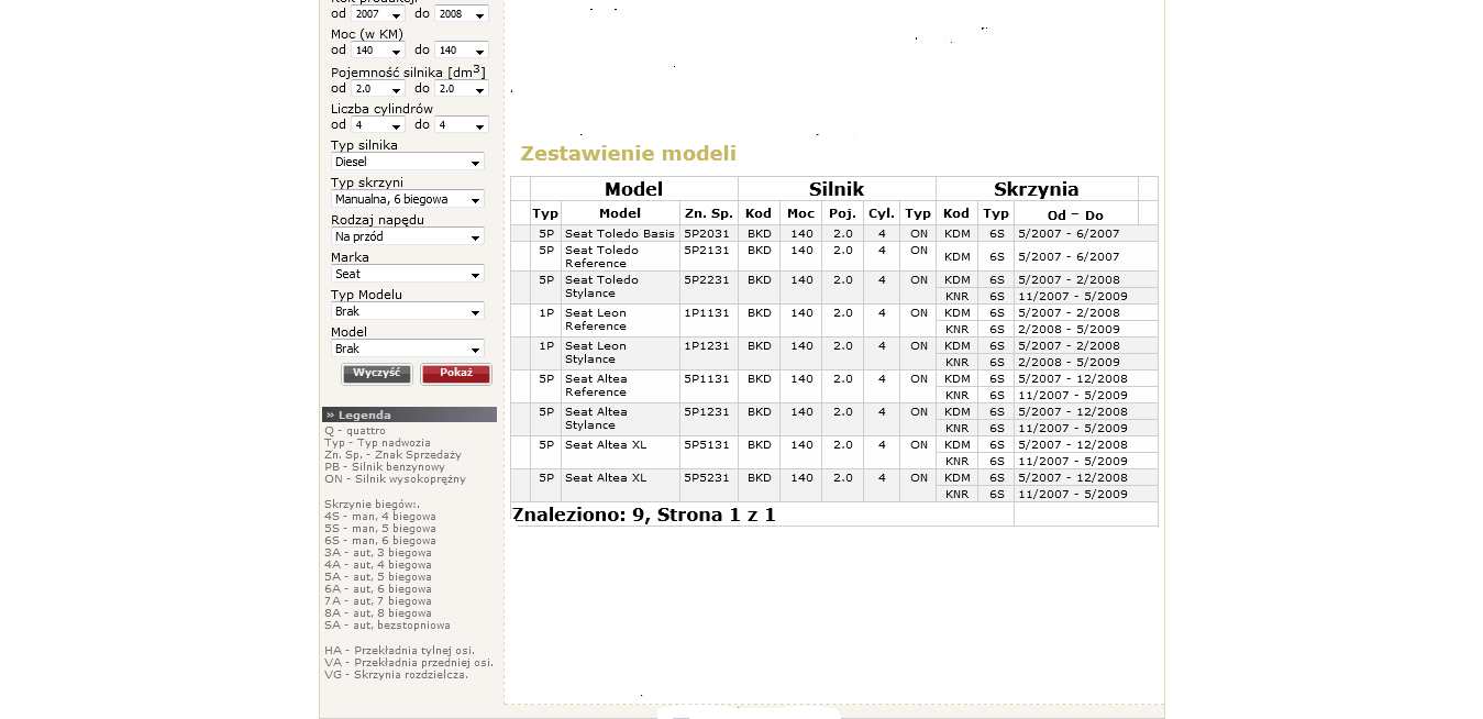 Witam wszystkich. Prosze o pomoc w ustaleniu kodu skrzyni biegów po numerze vin. Chce kupić dwumase do Seat altea 2.0tdi,140km. Silnik BKD i nie mogę znaleźć w bagażniku na nalepce nie ma na skrzyni nie mogę znaleźć. Numer vin to: VSSZZZ5PZ8R020232. Z góry dziekuje za pomoc.