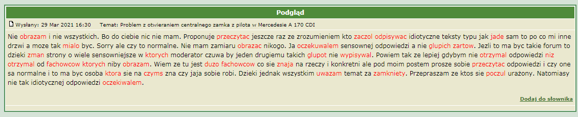Witam, mam problem z otwieraniem drzwi z pilota w Mercedesie A klasy, po pierwszym wcisnieniu otwieraja mi sie przednie drzwi a po drugim nacisnieciu z pilota otwieraja mi sie tylne, jeszcze kilka nacisniec na pilocie potem bagaznik i klapka wlewu paliwa. Natomiast przy zamykaniu gdy nacisne pilota wszystko sie zamyka. Ta sama sytuacja jest z przyciskiem w srodku samochodu, bo kilkakrotnie trzeba przycisnac by otworzyc kilka drzwi. Próbowalem programowac kluczyk, kodowac i rozne bajery i nic to nie dalo. Jak to usunac. Prosze o pomoc.