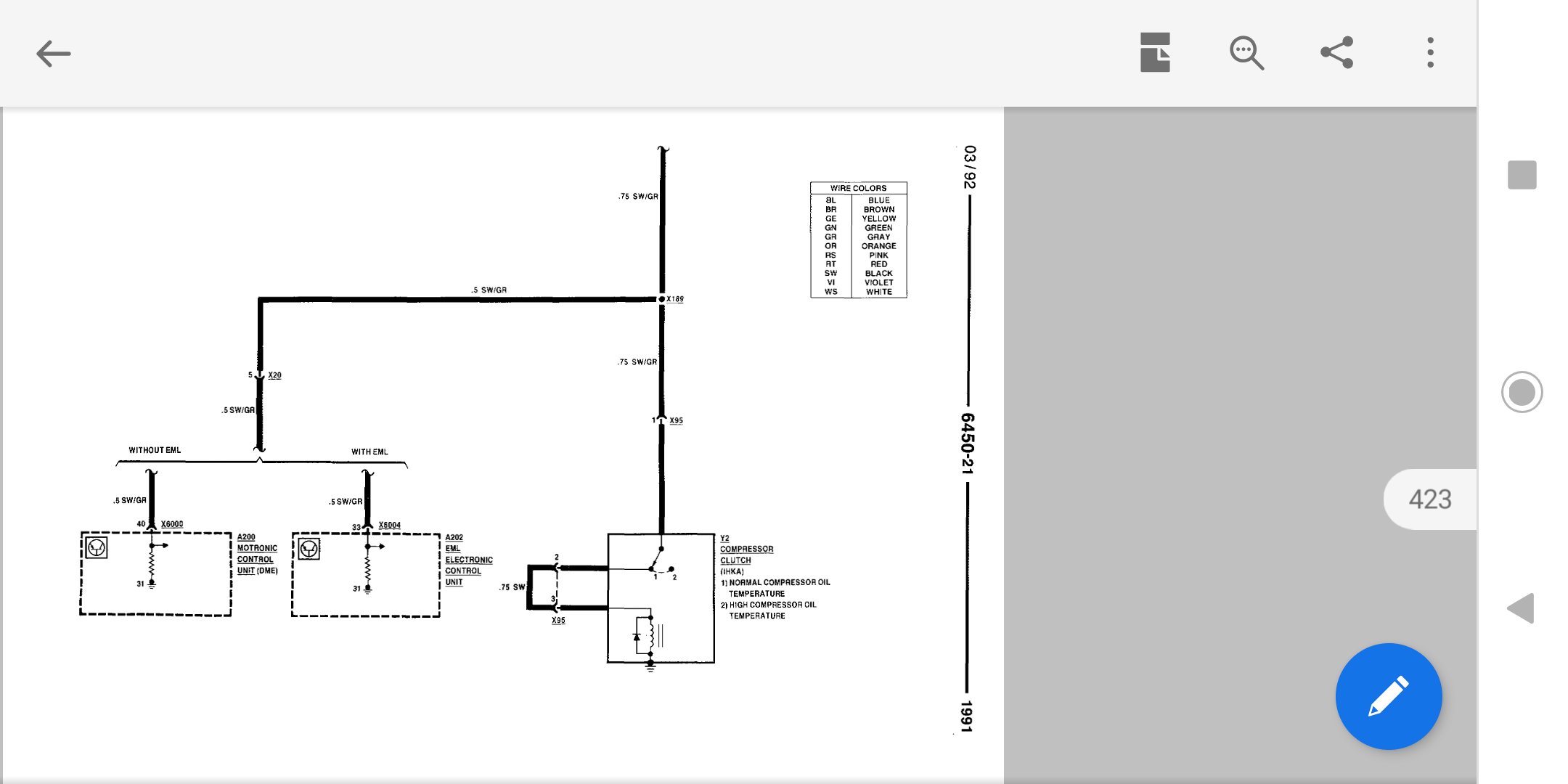 Klopot jest taki że z tego kabla Swgr leci cały czas 12v, na drugiej pozycji kluczyka jak i po odpaleniu auta. Powoduje to że kompresor włącza się sam bez pytania tj guzika z panelu,sprzegielko chodzi non stop nie cyklicznie. Odpinając ten kabel od pętli kompresor dme, osusacz, klima chodzi normalnie tj włącza się z guzika, sprzęgiełko cyklicznie się włącza.