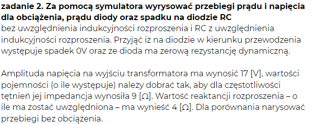 Częstotliwość źródła ustawiłem na 50Hz, więc czestotliwość tętnień bedzie 100Hz.