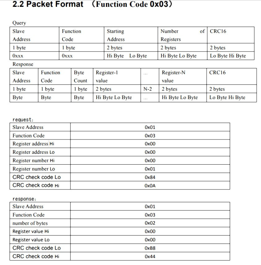 Witam, w Chinach "zrzynają" między sobą więc w kodach robią podobnie. Wykorzystaj lub próbuj posłużyć się packet code które znajdziesz w załącznikach, które podrzuciłem. Znajdziesz prawdopodobną składnie zapytań do przetwornicy. Musisz nać adres slave'a.