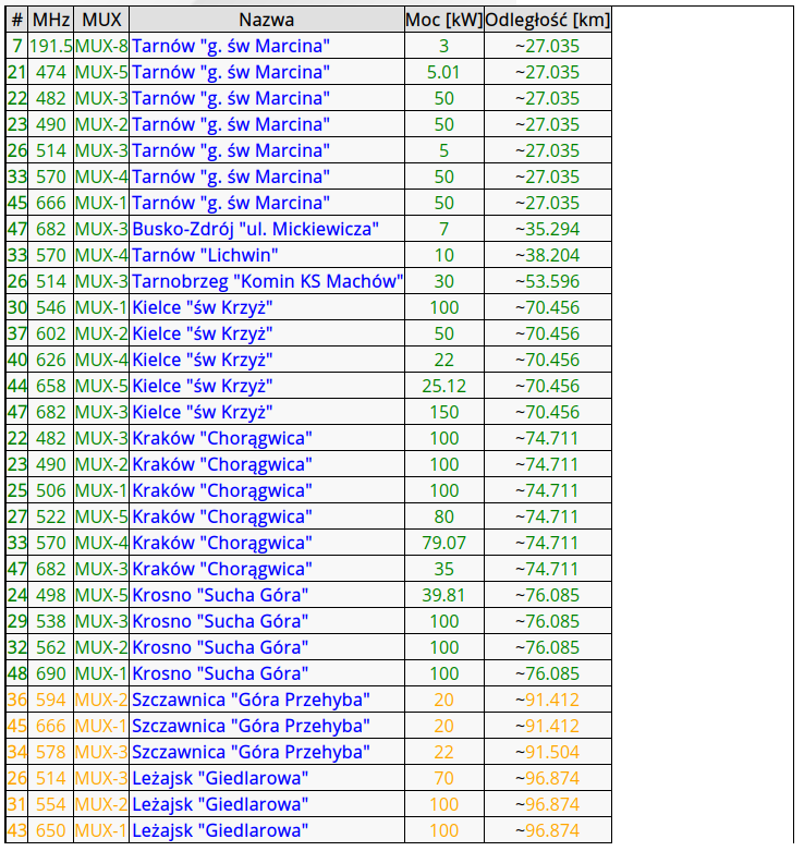 Według tego co udaje mi się póki co "złapać" w zasięgu są nadajniki Tarnów, Kraków i Kielce.