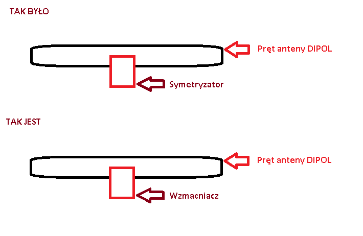 I teraz moje pytanie czy można było założyć zamiast symetryzatora wzmacniacz - patrz obrazek, pręt nie robi zwarcia?
