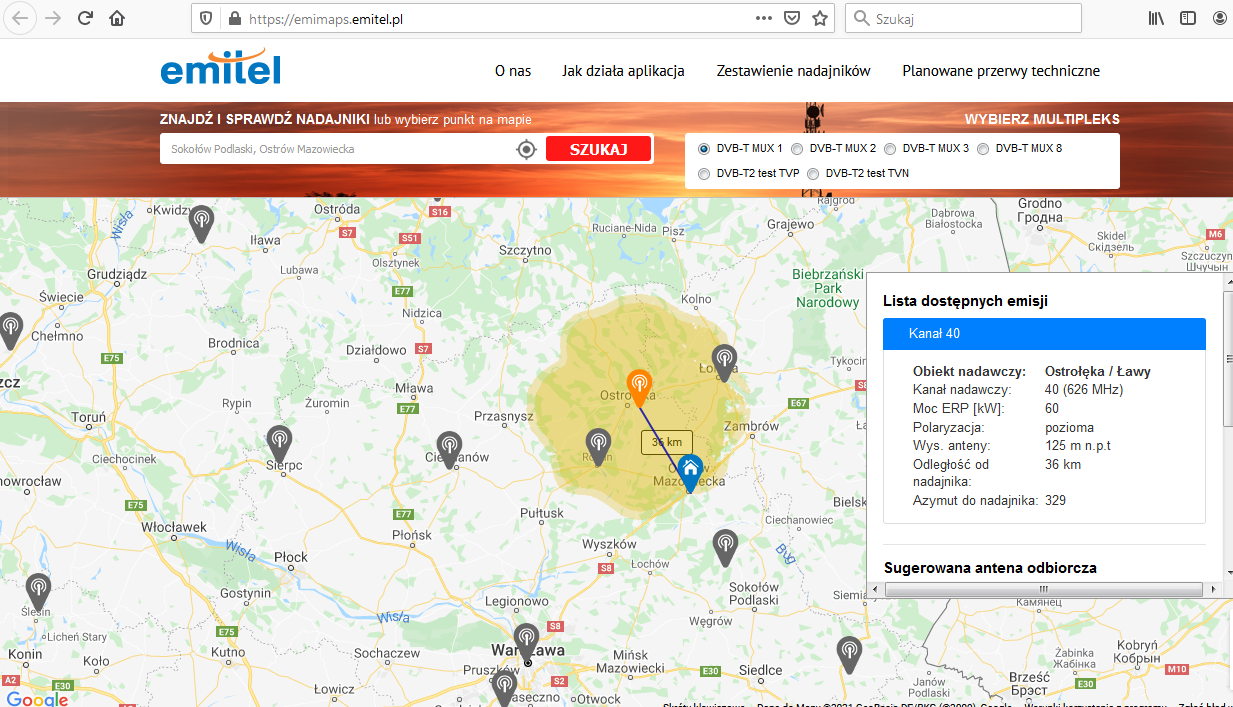 I tutaj również napotkałem na problem. Antena siatkowa, którą zabrałem rodzicom odbiera jedynie sygnał z nadajnika "Chruszczewka" mux-3 6 programów. W pewnym momencie wykryło mi mux-1 8 programów, ale następnego dnia programy znikły i już nie mogę ich wykryć. Oczywiście będę musiał dokupić moduł vhf do odbioru mux-8, ale póki co chcę rozwiązać problem z odbiorem pozostałych muxów. Zakupiłem antenę dookólną, aby sprawdzić czy uda mi się odebrać sygnał z nadajnika "Podborze", niestety nic nie wykrywa. Najlepiej dla mnie byłoby ustawić antenę na Ostrołękę, ponieważ właściwie wszystkie muxy stamtąd byłyby dostępne (również TVP 4k na którym mi zależy). Niestety nadajnik znajduje się po drugiej stronie budynku (może da się to jakoś rozwiązać, bo mieszkam na ostatnim piętrze i mogę wysunąć antenę nad budynek?).