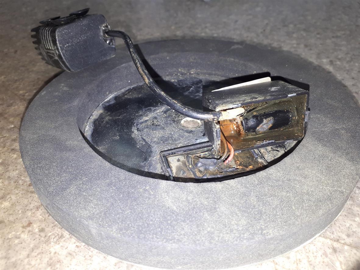 Po odklejeniu pudełka okazało się, że jedynym elementem jaki da się odczytać to elektrolit 4700µF/16V - cała reszta jest zalana czarną żywicą i nie ma możliwości zobaczenia co tam jest ani wydłubania zawartości z pudełka.