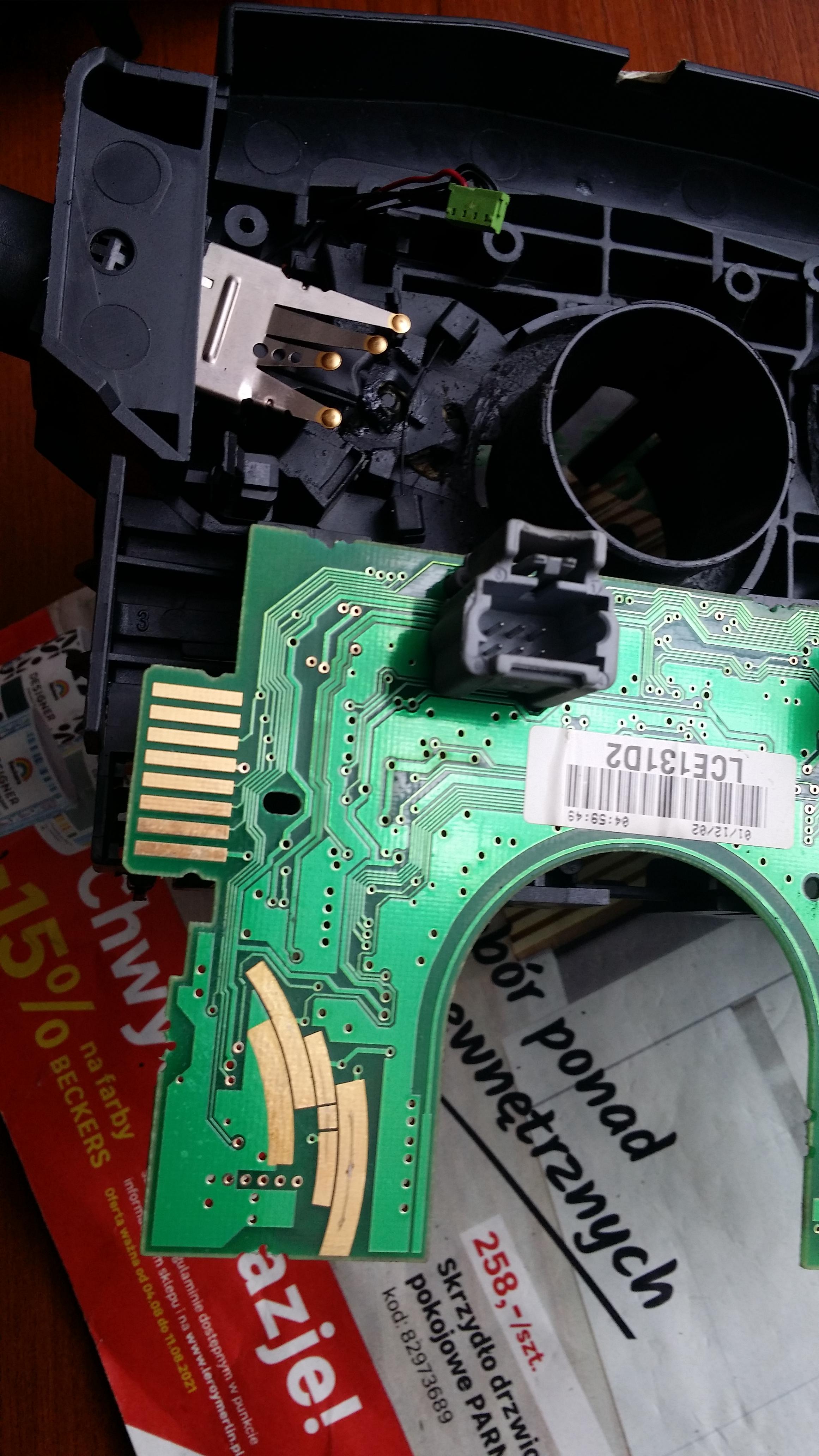 Rozebrałem przełącznik zespolony kierunkowskazów DAV 2000 COM.Wymieniłem zapadkę plastikową która odpowiada za odpowiednią pozycję manetki od kierunków.Niestety przez nieuwagę przegiąłem blaszki które odpowiadają za światła i kierunki. Proszę podpowiedzieć którą za mocno przegiąłem że świecą światła drogowe.Jak rozbiorę ponownie to dorzucę zdjęcie płytki z ścieżkami.