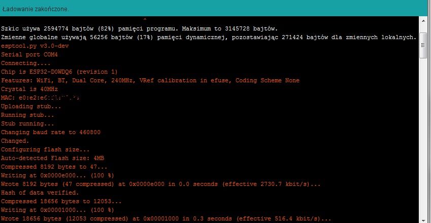 Kompilujemy nasz sketch i wgrywamy do ESP32;