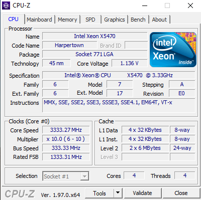 Procesor : Intel Xeon X5470 (LGA 775) podkręcony do 4,25 Ghz