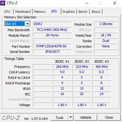 RAM : 2x 2GB Corsair Dominator DDR2 1066MHz PC8500, 2x 2GB Hynix 2Rx8 6400U 800MHz