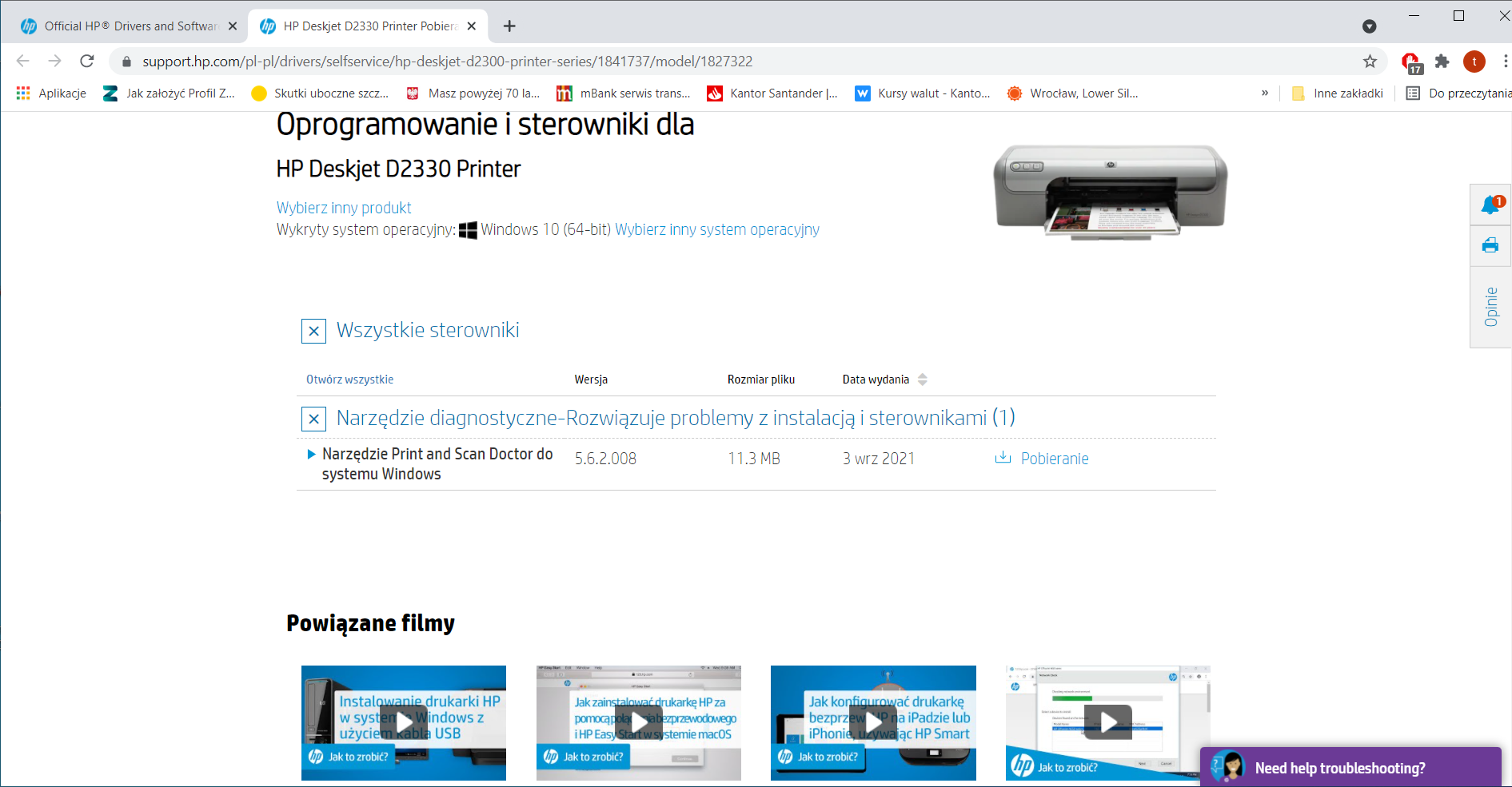 Drukarka działała bez problemu pod Windows 7 z domyślnym sterownikiem. Pod Win 10 (64 bit) nie działa. Próbowałem zarówno z domyślnym sterownikiem Windows'a, jak i z oferowanym przez HP programem "Print and Scan Doctor".