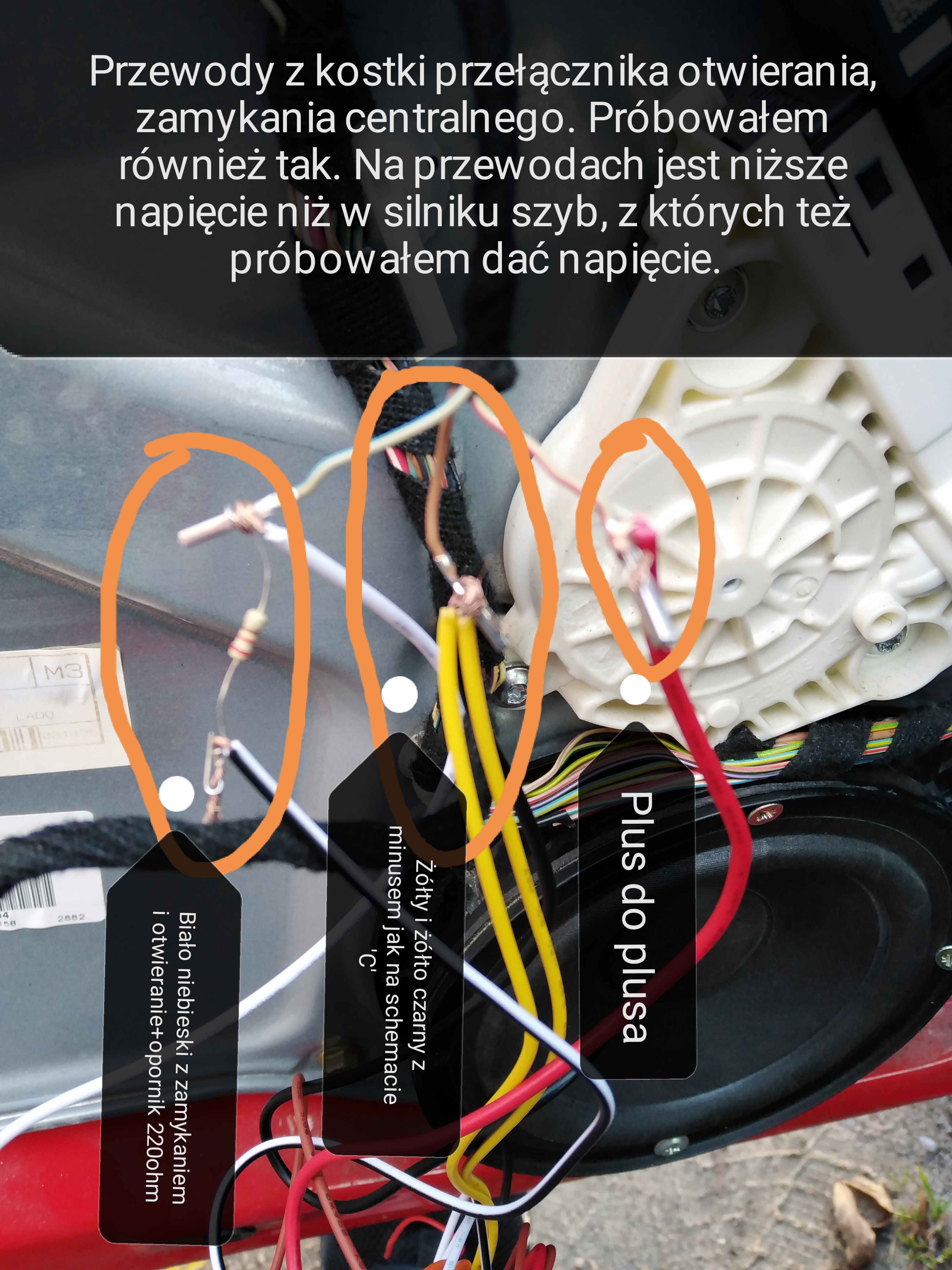 Witam. Szukałem w Google i znalazłem ze dwa tematy, które mnie interesują, lecz za słabo opisane bym sobie z tym poradził. Chcę podłączyć uniwersalny sterownik zamka z pilotem, szukałem centrali w samochodzie od centralnego, lecz go nie znalazłem, więc rozważam podłączenie łatwiejszym sposobem tzn.do przełącznika w drzwiach, którym zamyka i otwiera się centralny. Próba podłączenia skończyła się zawarciem i wywalenia bezpiecznika. Czy mógłby mi ktoś w tym pomóc. Załączam fotki sterownika z pilotami oraz schematy z instrukcji. Nie mogę ogarnąć tego tzw sterowania masą lub plusem i którym konkretnie schematem się kierować. Dodam, że w drzwiach mógłbym zasilanie mieć z silnika opuszczania szyby. W przełączniku drzwi są trzy kable: biało-czerwony(plus), biało-niebieski i brązowy(masa). Pozdrawiam.