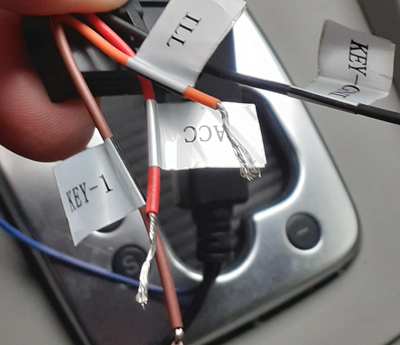 Na drugim obrazku jest pokazane jak jest podłączony Hardware Kit do wideorejestrator (czerwony VCC i żółty ACC)