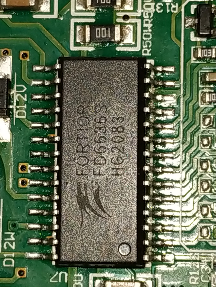 3 fazowy driver 6-ciu tranzystorów IGBT kooperujący z Mikroprocesorem to U7=FD6636S (FORTIOR) którego datasheet posiadam (jego prawdopodobny zamiennik to IRS2336). On również jest zasilany z gałęzi 5V, ale się nie grzeje.