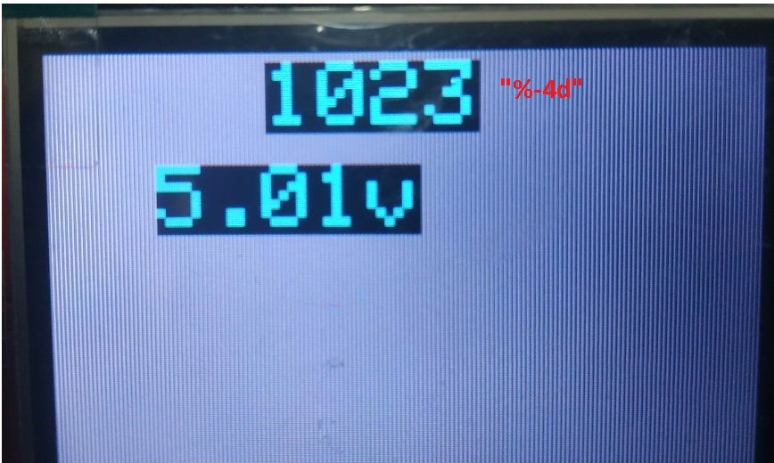 Przećwiczyłem rysowanie podstawowych figur, czy napisów. Daję radę. Nie mniej jednak postanowiłem coś innego, a mianowicie wysłać jakieś dane w postaci choćby napięcia mierzonego na jednym z pinów ADC Atmegi.