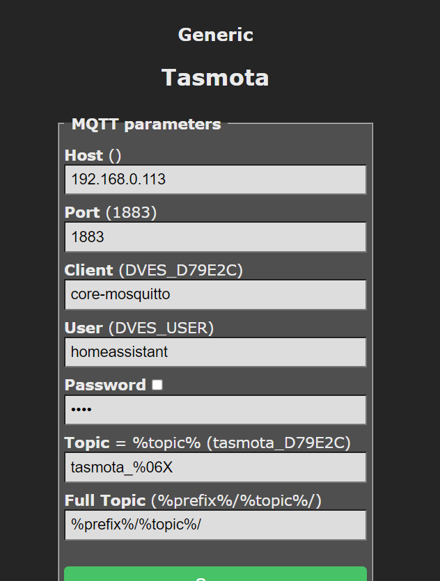 Najpierw w Configure MQTT wpisałem namiary na mój serwer HA: