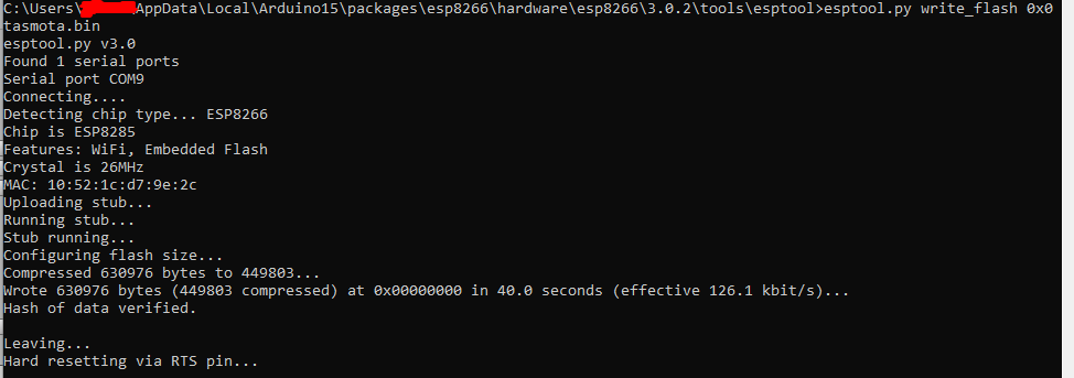esptool.py write_flash 0x0 tasmota.bin
