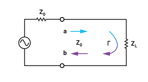 Rozważmy tzw. linię transmisyjną — na przykład przewód koncentryczny lub linię mikropaskową — zakończoną dowolnym obciążeniem i określmy wielkości fal: „a” i „b”, jak pokazano na rysunku 1.