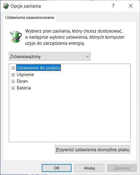 dlaczego, z jakiego powodu, w Windows 10 Pro, w "Opcje zasilania" nie widać pozycji "Dysk twardy" i "Ustawienia USB"?