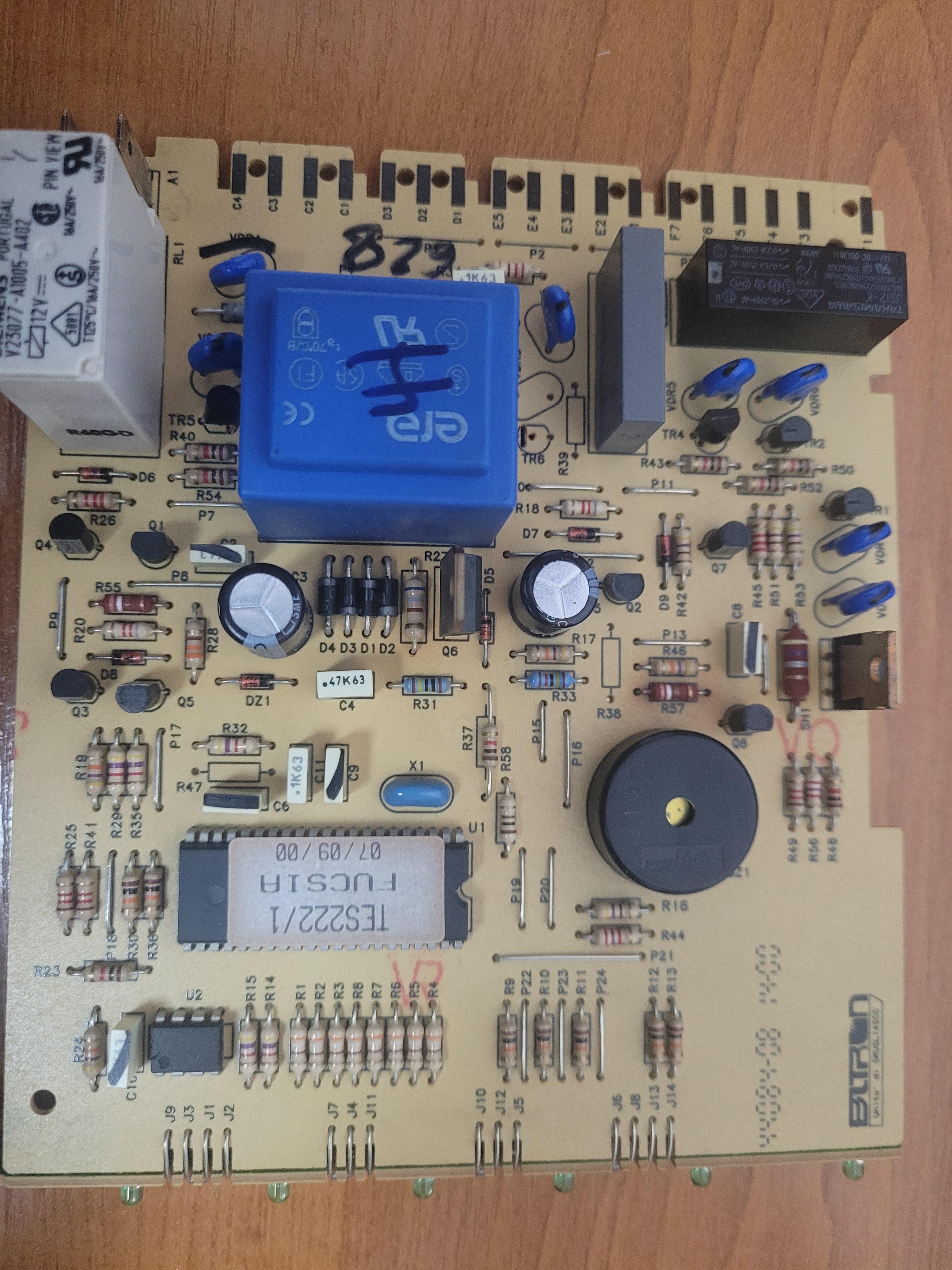 Ma już swoje lata ale działała dotąd bez zarzutu i wygląda jeszcze bardzo dobrze więc szkoda wyrzucać na śmietnik. Objawy - po włączeniu przycisku zasilania zapala się zielona diodka zasilania i to w zasadzie tyle - nie działa żaden przycisk wybieranego programu. Napięcie 230V dochodzi do programatora. Sprawdziłem też wyłącznik drzwiowy - też działa, chociaż wyboru programu dokonuje się przy otwartych drzwiach, więc sam wyłącznik drzwiowy nie powinien mieć wpływu. Wymontowałem programator (COD Zanussi 152.484.01/1 - Cod BITRON 56209) przyjrzałem się też poszczególnym elementom na płycie i jako laik nic nie wydaje się podejrzane. Załączam zdjęcie płyty - z innych postów wynika, że zaawansowani elektronicy potrafią "na oko" zdiagnozować uszkodzony albo podejrzany element. Będę ogromnie wdzięczny za wszelkie sugestie albo informacje co wydaje się Wam podejrzane, jakie napięcia zmierzyć i ewentualnie które przewody odbiorników muszą być podpięte żeby móc włączyć program na programatorze .