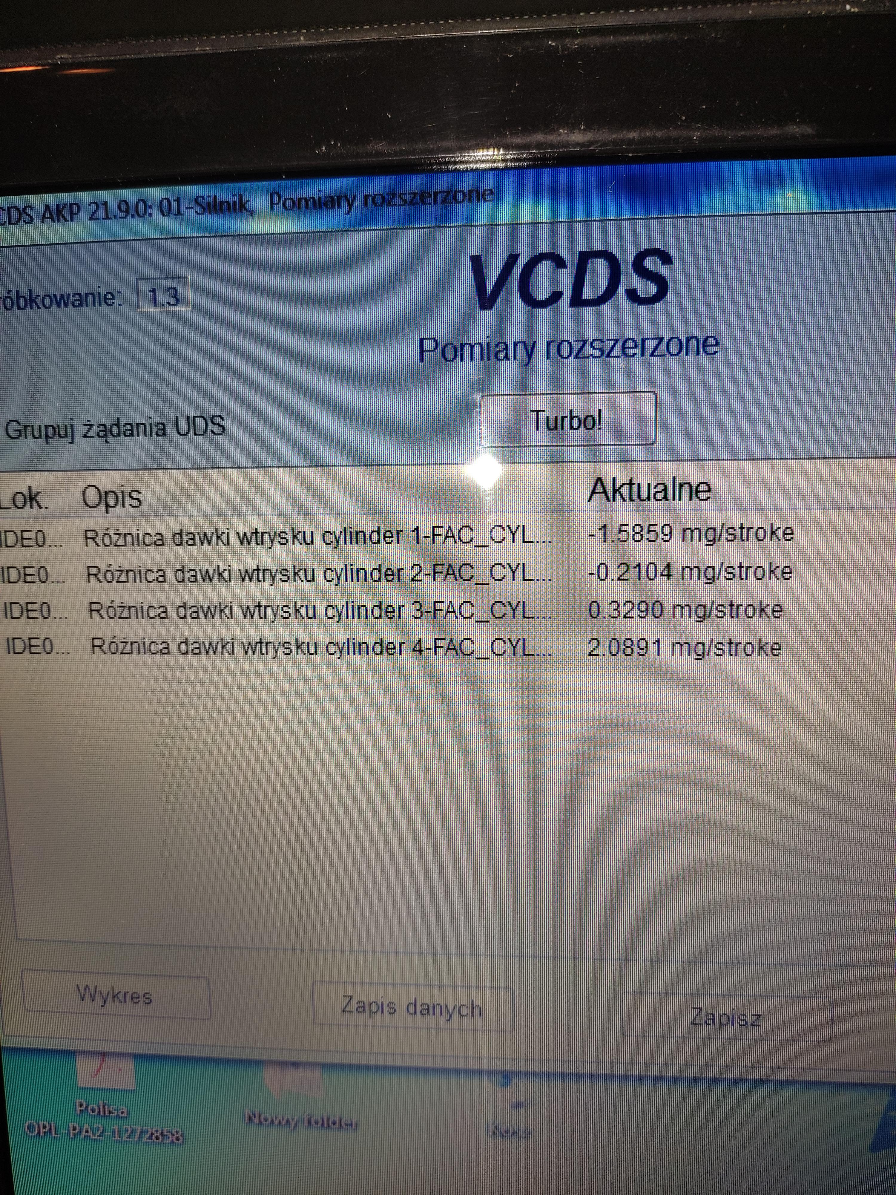 Witam.Posiadam Golfa 6,1.6 TDI z 2009 r.Juz go kupiłem z takim problemem.Manowicie silnik jak jest zimny,nie pracuje równo.Tak jakby chodził na 3 cylindrach.Jak złapie temperatury,to praca się powiedzmy że wyrównuje ,ale strasznie kopci na siwo(przy temperaturze 90 stopni już nie ma prawie wogule kopcenia).Wyjałem wtryski do sprawdzenia,bo ktoś mi powiedział że to może być tego wina.Zostaly sprawdzone przez takiego kolegę ,mojego znajomego i stwierdził że jeszcze pochodzi na nich.Zostaly założone z powrotem,kody przypisane jeszcze raz.Ale problem ten sam.Ten kto sprawdzał ,te wtryski powiedział ,że muszą zostać wtryski wyuczone w programie ,np:VCDS.Spróbowalem to zrobić,procedura się rozpoczyna.Wchodzi auto na obroty i spada i tak cały czas.Tak trzymałem wciśnięty pedał hamulca i gazu z 15 minut.Ale nie chce się zakończyć.Ile takie wyuczanie może trwać?A zapomniałem dodać,że w aucie nie ma DPF,jest całkiem usunięty.Gdzies tam na YouTube widziałem,że ktoś najpierw wypalał DPF,a dopiero później robił wyuczanie wtrysków(może taka ma być kolejność,chociaż ja nie mam co wypalać)?W załączniku załącze korekty wtrysku jakie są na rozgrzanym silniku przy 90 stopniach.Spojrzcie koledzy na nie.