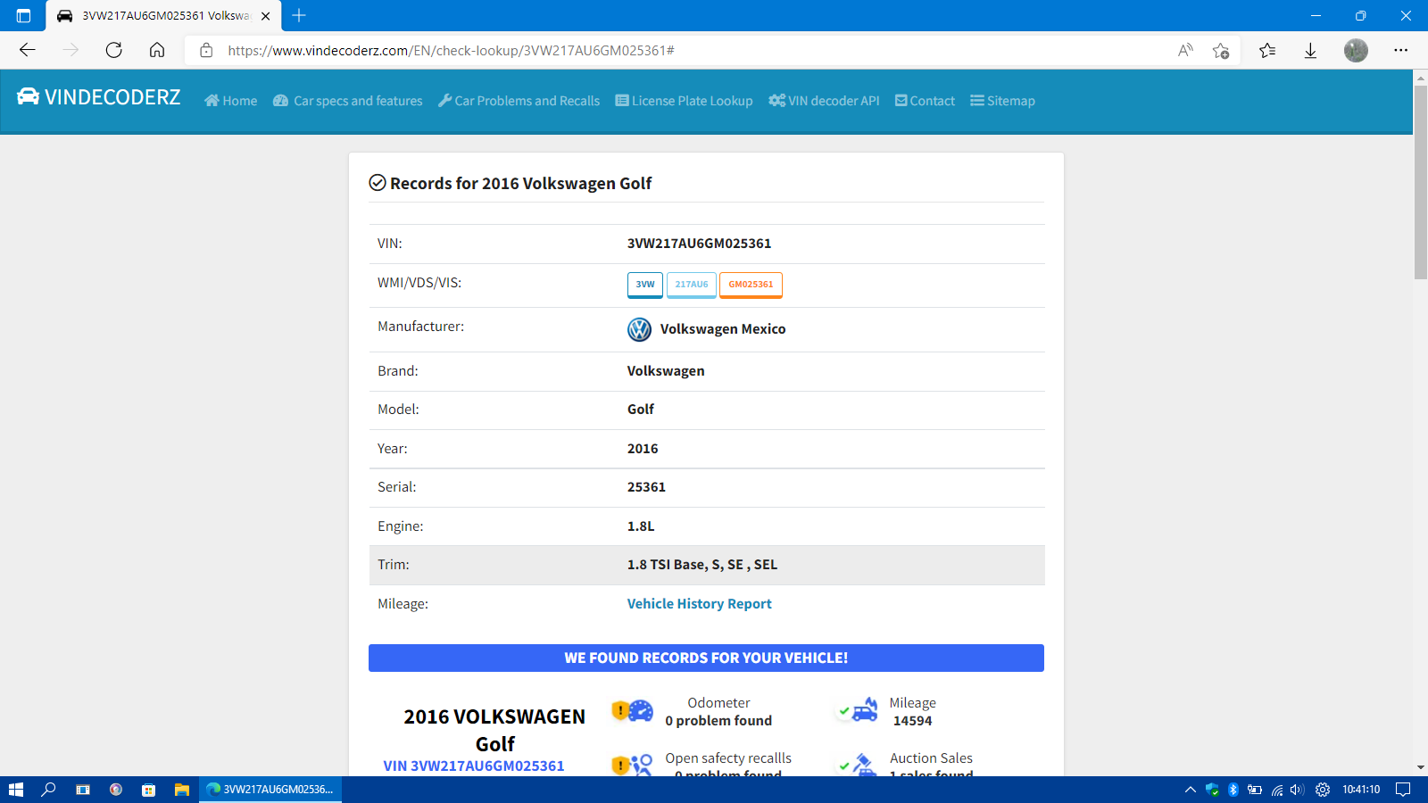 W.g. VINu to silnik CXBB (1800CC / 170hp / 125kW), czyli inaczej EA888 gen. 3, z 6 biegowym automatem (PPU).