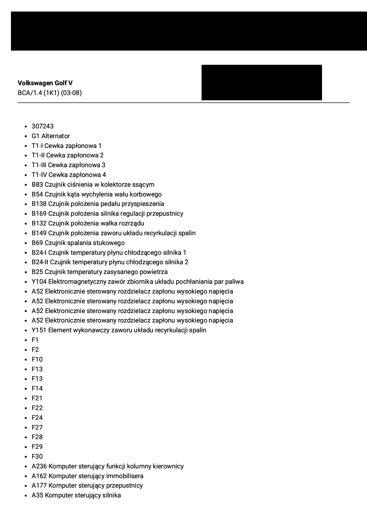 VW Golf V kod silnika BCA