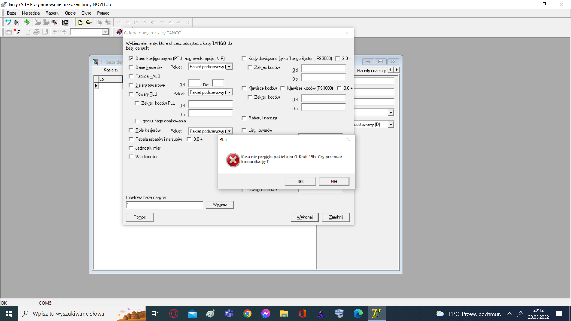 potrzebuję pomocy z programem tango 98 lub nserwis bo podłączyłem kasę do komputera i program pokazuje błąd odczytu.