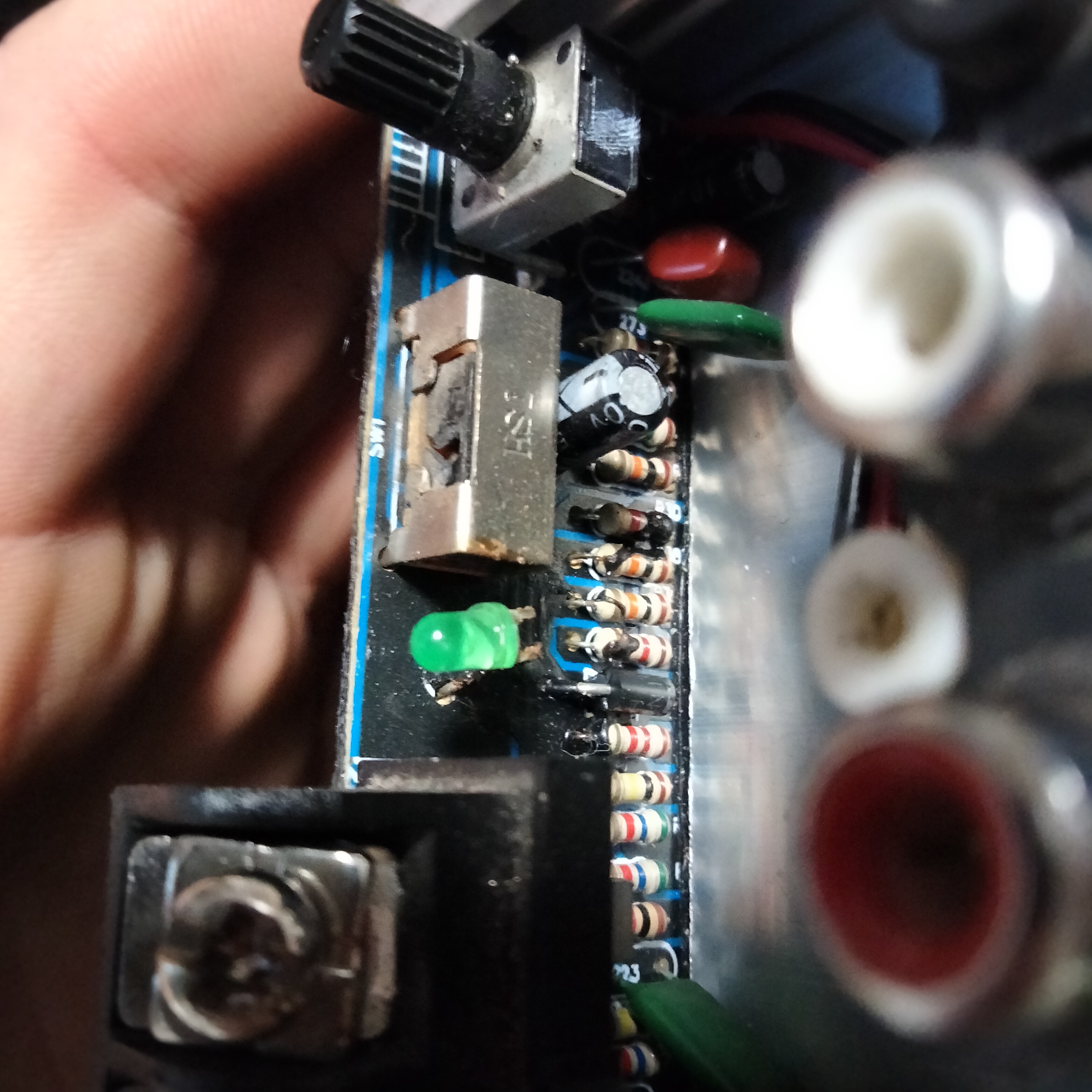 Lampka nie zapala się po podłączeniu i włączeniu radia (zawsze działało) radio jest w porządku cała instalacja również a bezpiecznik nie jest spalony. Sprawdziłem to także na prostowniku spinając aktywację na + i podpinając pod prostownik. Kumpel elektryk Podpinał też to do jakiś urządzeń do pomiarów. Niestety z elektryki i elektroniki jestem bardzo słaby więc nawet nie wiem co i jak postaram się znaleźć jego wypowiedź. Na ten temat i wkleję w komentarzu ponieważ ja z tej elektrycznej paplaniny nic nie rozumiem chce tylko żeby tuba pogrywała (nie jest możliwe żeby się spaliła ponieważ nigdy nie była puszczana na maxa.) Dostałam zdjęcia z pytaniem czy jest jakiś zamiennik tej płytki? Lub czy wystarczy tylko coś przelutować? Niestety całego układu nie umiem znaleźć na internecie a cena nowej tuby wyjdzie pewnie tyle co naprawa.
