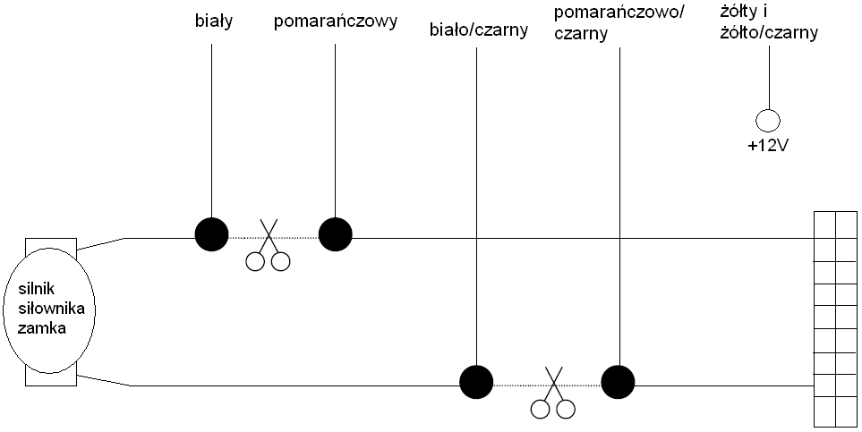 Będę wdzięczny za pomoc. Chcę podłączyć dodatkowy zamek centralny z alarmem. Aktualny zamek centralny sterowany jest podobno minusem. Żaden z przewodów nie reaguje na masę. W żadnym z nich nie leci na bieżąco 12V. Przy zamykaniu/otwieraniu masa na przemiennie z 12V znajduje się na szarym i kremowym. Niestety innego podłączenia nie idzie zrobić gdyż aktualna centralka jest za głęboko wciśnięta pod kierownicę. Do środkowego przycisku zamykania auta idzie 6 przewodów. Tylko jeden reaguje na masę na zasadzie otwórz/zamknij/otwórz/zamknij (żaden z nich nie jest niebieski czy zielony -jak piszą w instrukcji). Awaryjne właściwie reagują na masę. Pozostałe 4 przewody nie reagują. Doradźcie coś...