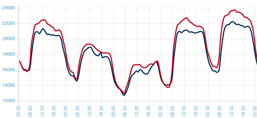 Widocznie oświetlenie nie ma aż tak istotnego wpływu, jeżeli sprawdzicie jakie jest zapotrzebowanie mocy KSE okazuje się, że w okolicach godziny 6:00-8:00 zapotrzebowanie rośnie z 15GW do 22GW i nie występuje taki efekt gdy zapada zmrok.