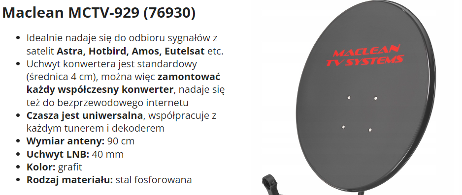 Antena SAT: Maclean MCTV-929 (76930) 90cm
