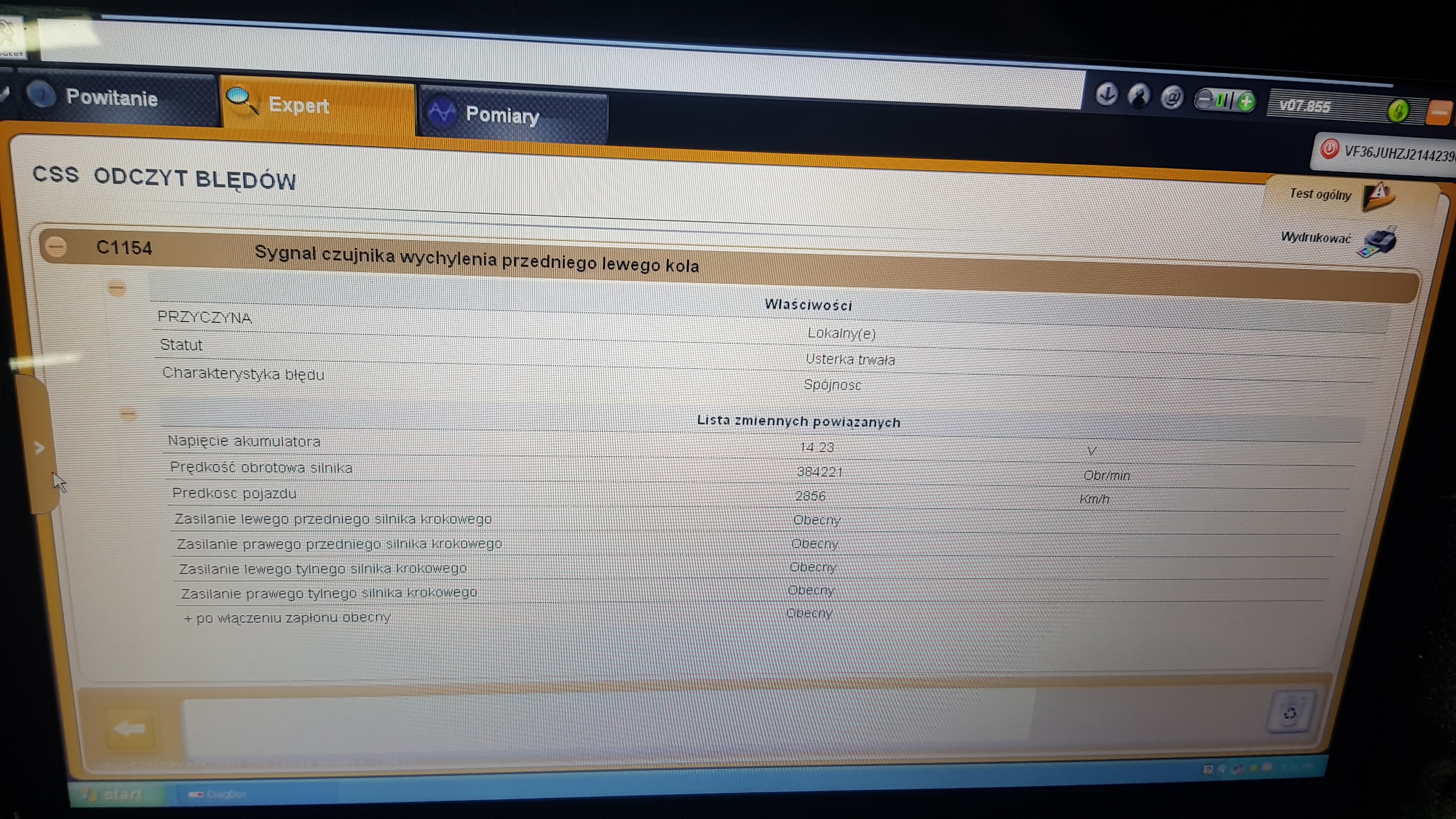 Witam, mam problem z moim Peugeot 407 Coupe 2.7HDi . Mam ciągle błąd C1154 Sygnał wychylenia przedniego lewego koła, statut Usterka trwała , Charakterystyka błędu Spójność.