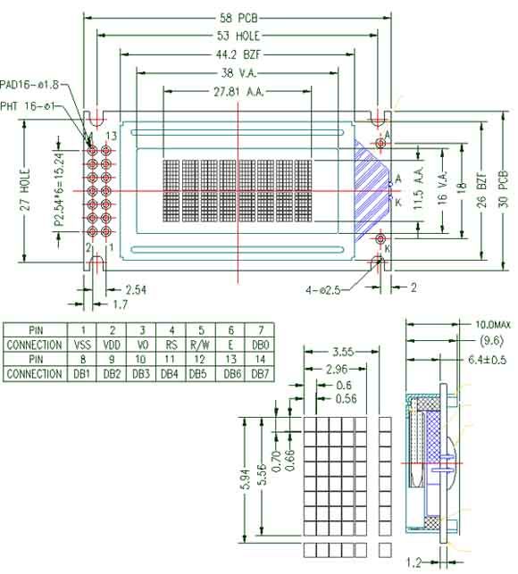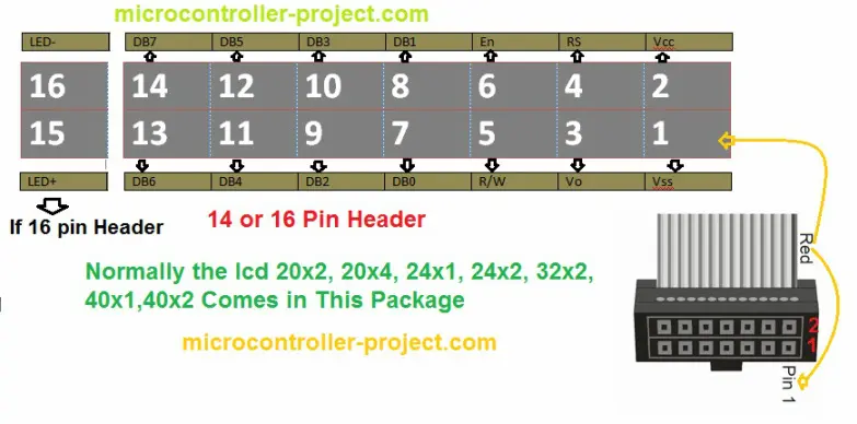 Ustal położenie masy (Vss) i Vcc, reszta powinna się zgadzać. Piny opisane na Twoim wyświetlaczu jako 1 i 2 to zasilanie podświetlania, reszta jest o te 2 przesunięta ale możliwe też, że i odwrócona.