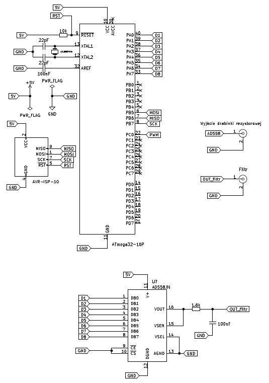 Chcąc budować układ przetwornika cyfrowo-analogowego. Zbudowałem układ zaprezentowany na schemacie ideowym.