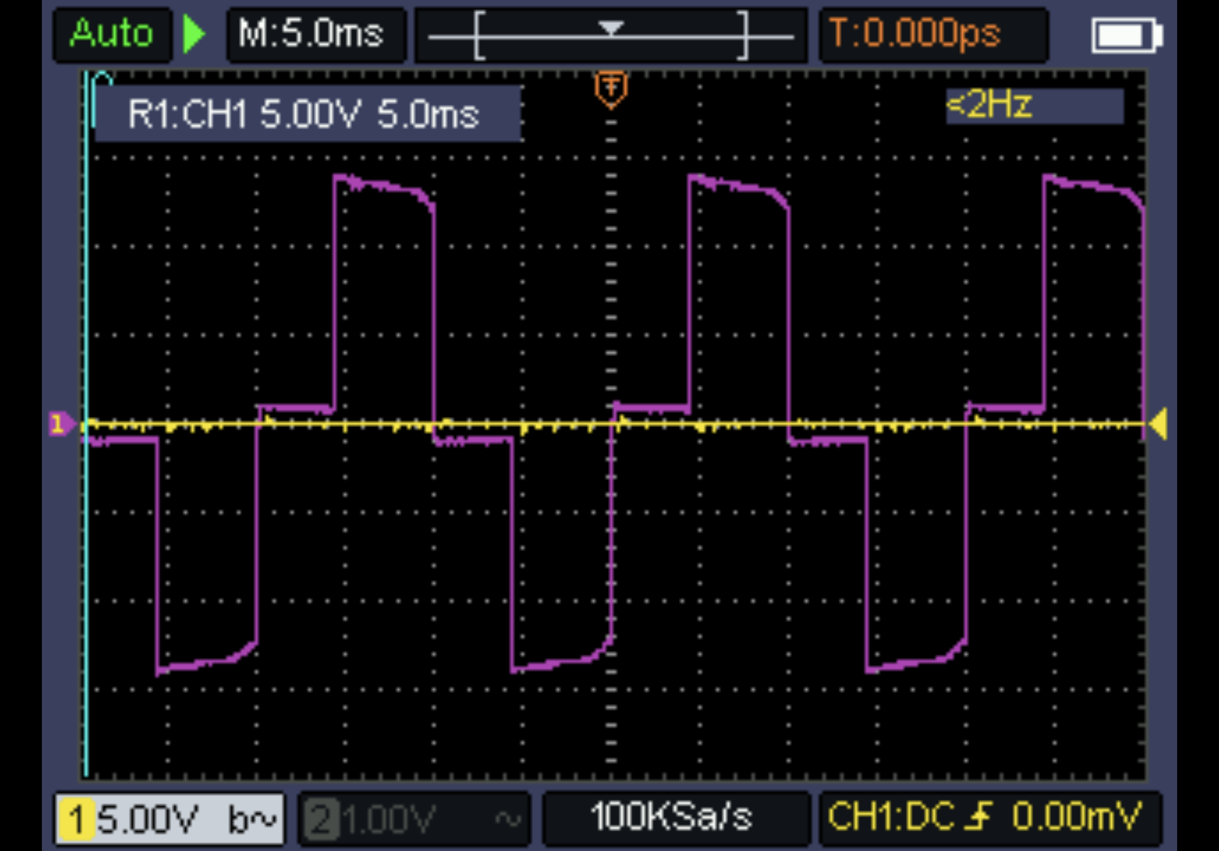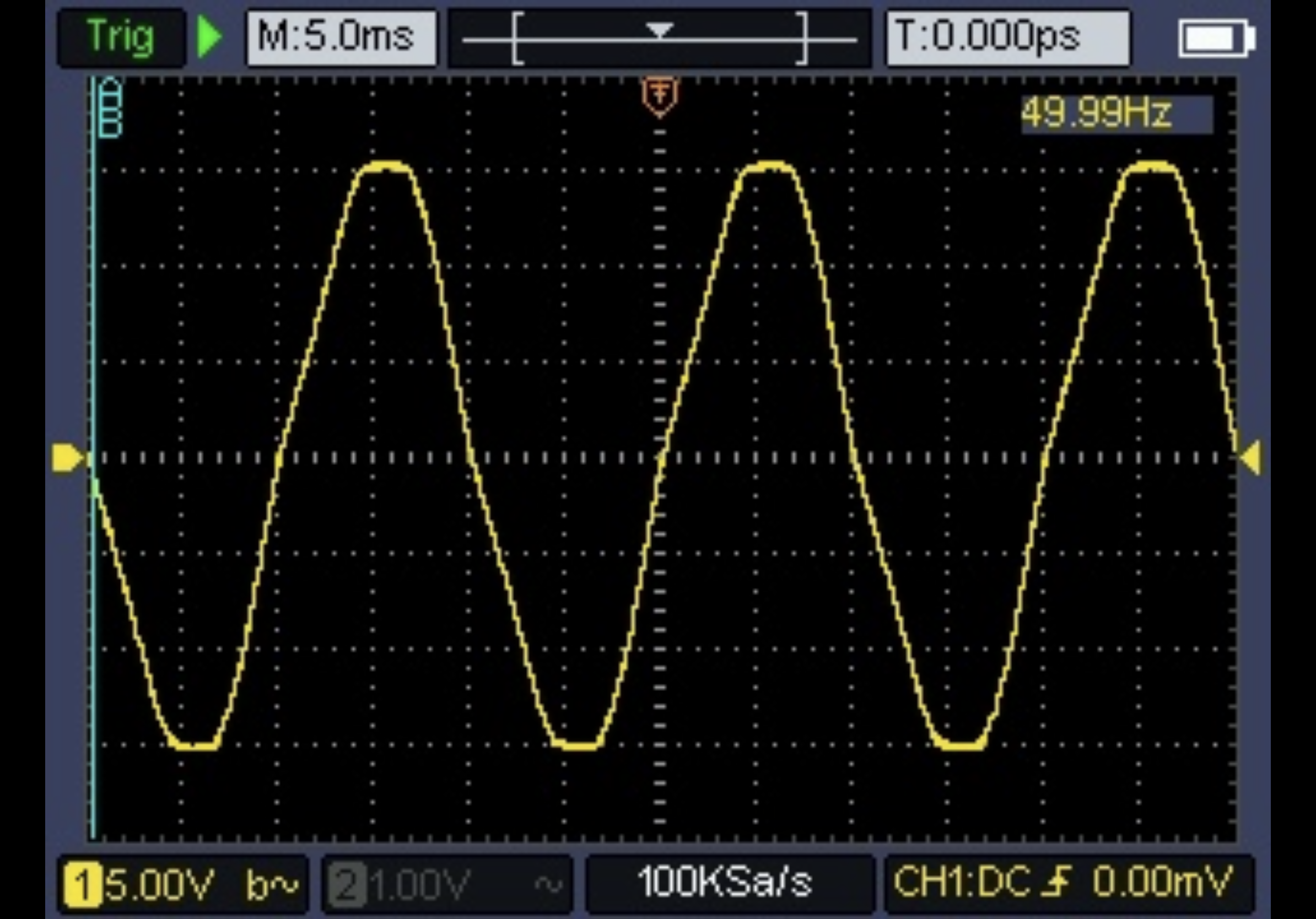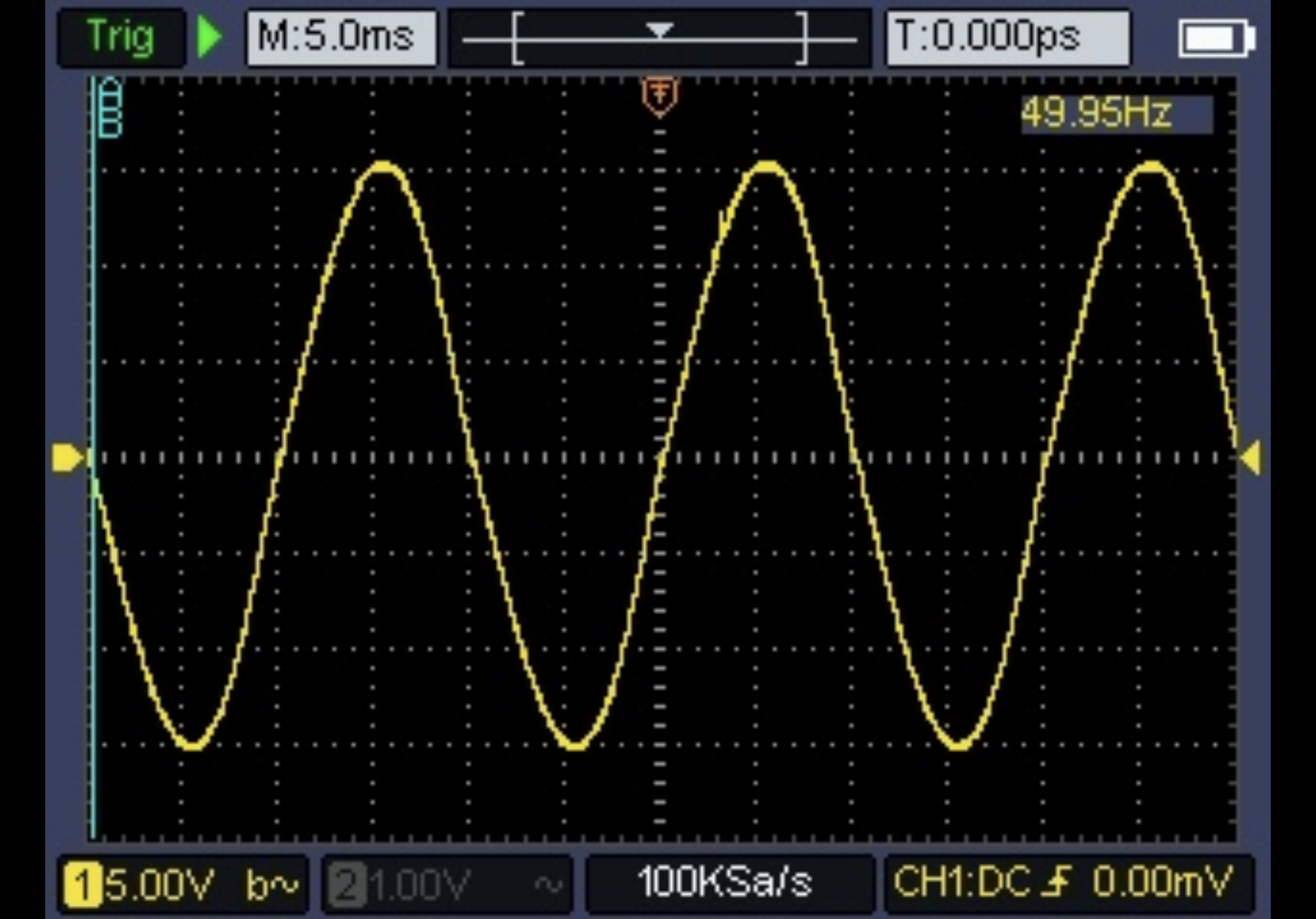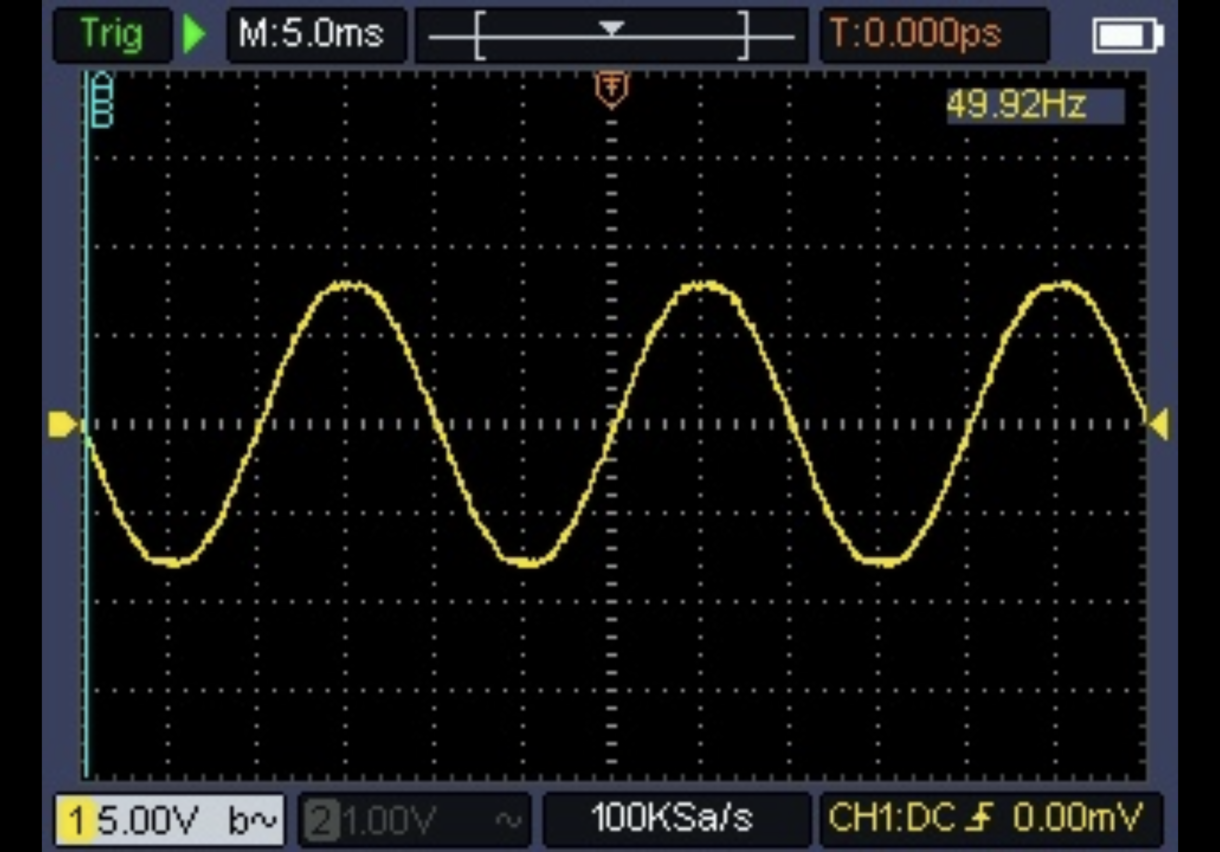 Oto przebieg przechwycony gdy zasilacz był w domowym gniazdku sieciowym: