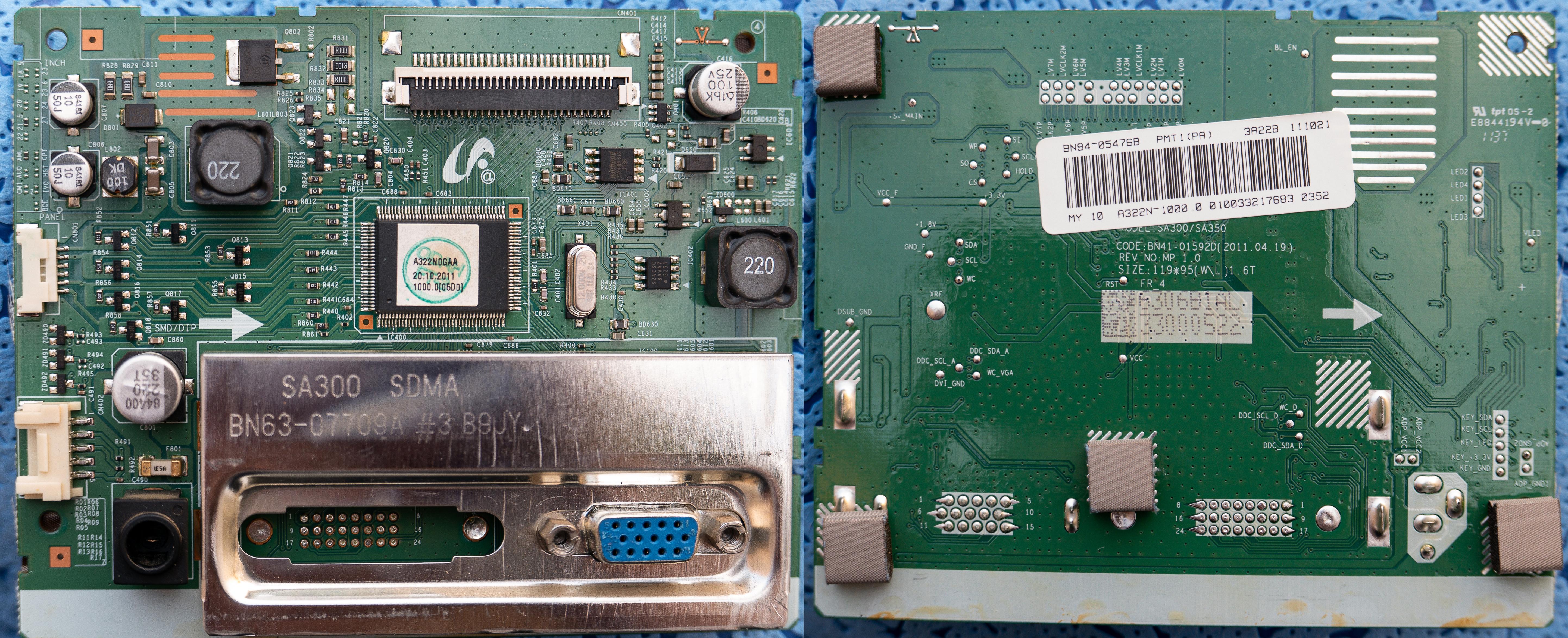 Sprzęt to Samsung S22A300N z płytą główną BN41-01592D(2011.04.19) REV NO:MP 1.0