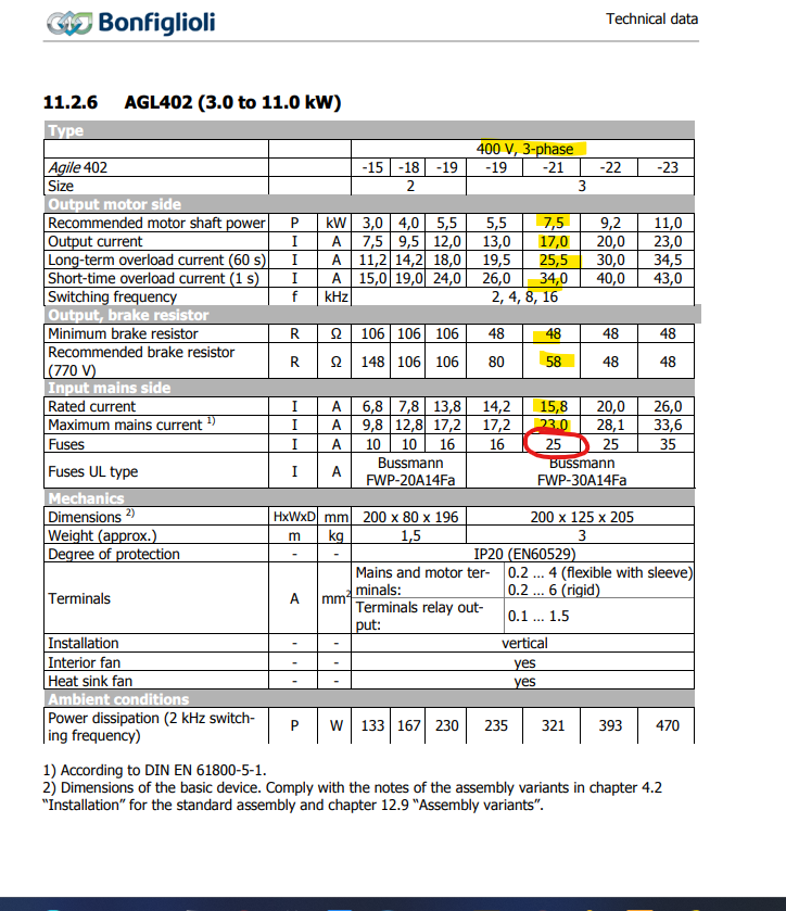 Posiadam falownik bonfiglioli agile 7,5KW i jest podpięty do pompy wody napędzanej silnikiem Tamel 7,5kw (SLg132S2B) 14,6A 2925obr. .