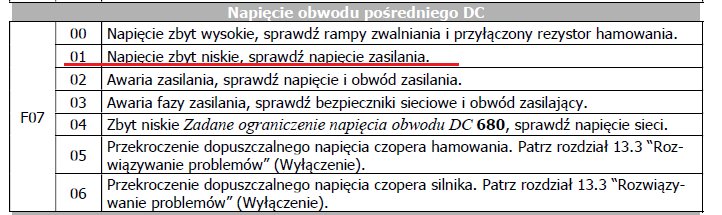 Do tej pory działało ok, teraz przy większym obciążeniu (ustawiając na falowniku np.48-50HZ) po pewnym czasie wyskakuje błąd F0701 i potem wybija bezpieczniki (C16)