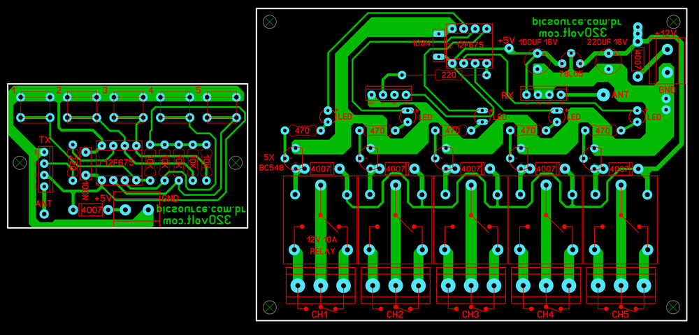 Witam, 5-kanałowy obwód sterujący przekaźnikiem RF oparty na mikrokontrolerze PIC12F675 IC może być używany z zestawem modułów RF 433mhz (użyłem zestawu modułów 434mhz, bez problemu).