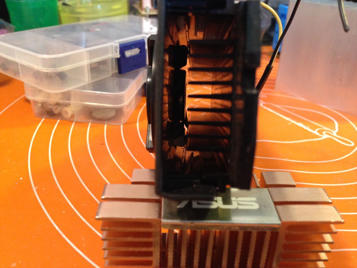 To wykorzystanie radiatora powstało z przypadku - tym razem pozyskanego od starego procesora głównego wraz z wentylatorem i (dorobioną oczywiście
