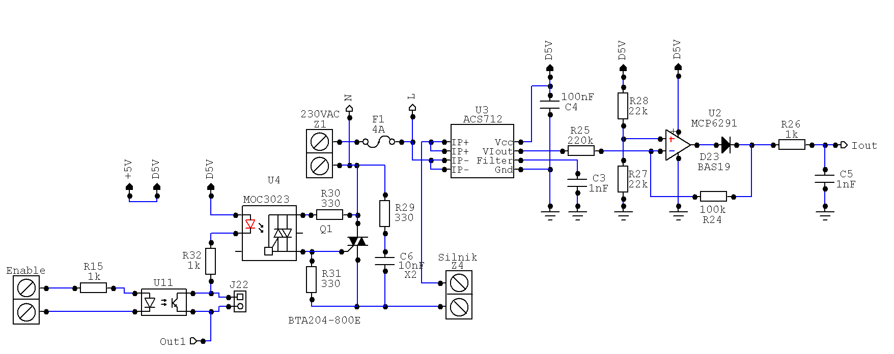 Układ sprzężenia zwrotnego będzie sterował fazowo triakiem dla uzyskania zadanych obrotów a ACS712 będzie wykorzystany do pomiaru prądu płynącego przez silnik.