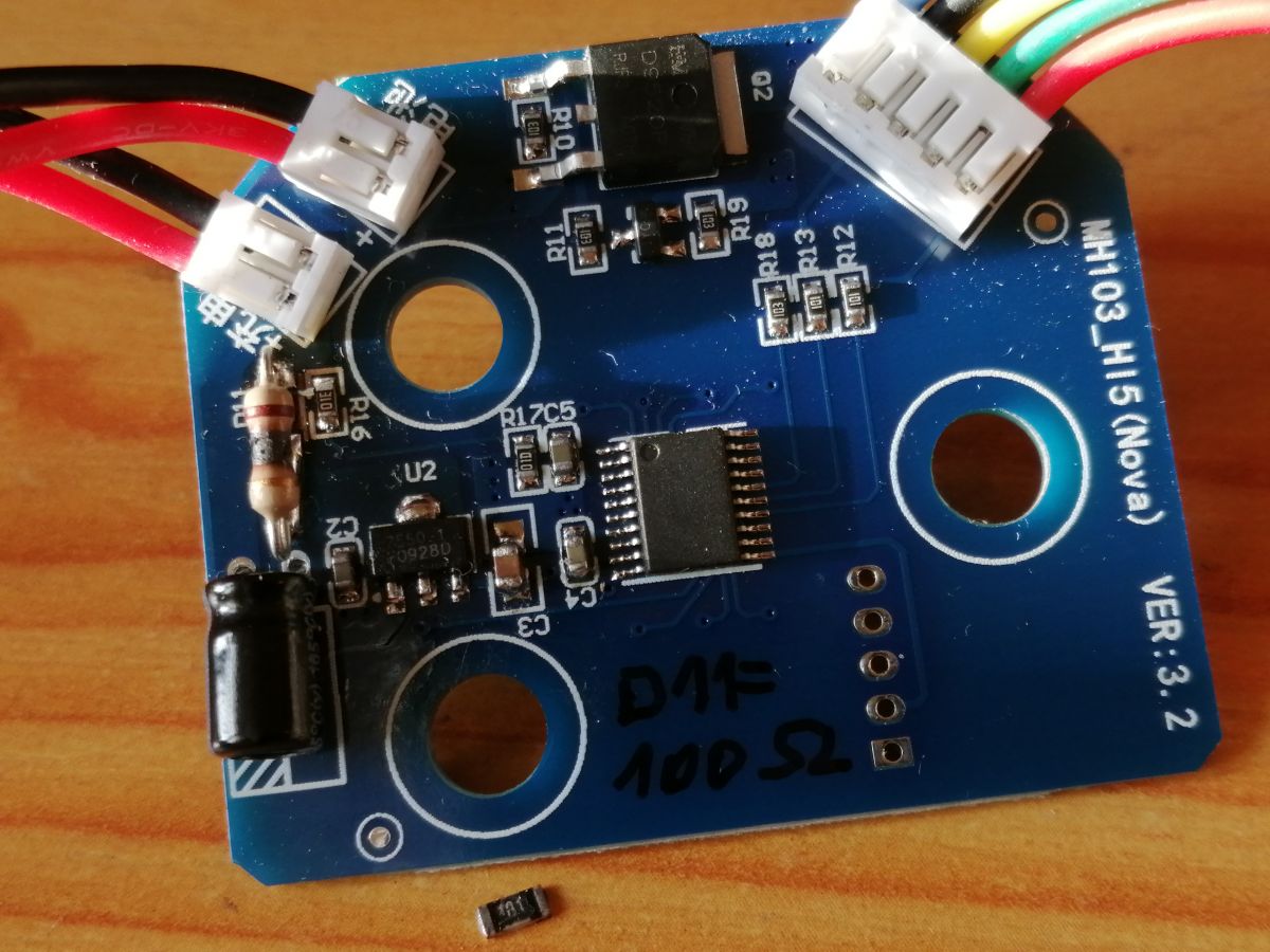 Rezystor R16/01E według dokumentacji powinien mieć 1Mohm natomiast po zmierzeniu bez wylutowywania ma niewiele ponad 100kohm.