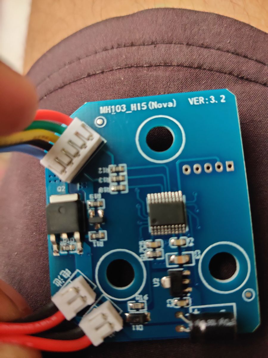 3 diody na płytce PCB pokazują 3 poziomy prędkości natomiast 4 diody pokazują poziom naładowania baterii.