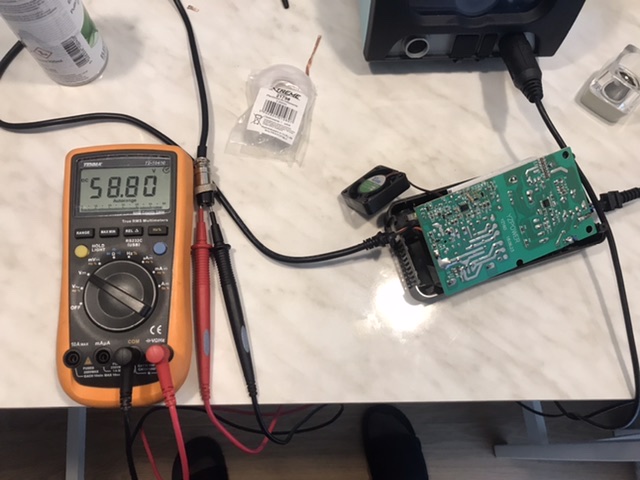 Posiadam ładowarkę YZPOWER 54,6 V, 4 A. Chciałbym zwiększyć jej napięcie, aby mogła posłużyć do hulajnogi 14s, czyli muszę podnieść napięcie do 58,8 V. Znalazłem potencjometr na płytce (zakres do 0 Ohmów do 2,4 kOhma) jednak kręcąc nim na maxa jestem w stanie wyjść tylko do 54,95 V. Kręcąc w drugą stronę, czyli zmniejszając opór do 0 Ohm napięcie spada do 53,65 V. Wyliczyłem z proporcji, że skoro 2,4k Ohm zwiększa napięcie o 1,3 V to ja, aby osiągnąć swoje 58,8 V potrzebuje podnieść je o 5,35 V musiałbym zatem tam mieć opór rzędu 10 kOhmów. Pewnie nie trudno znaleźć i podmienić taki potencjometr, tylko pytanie, czy moje myślenie ma sens, czy jest to bezpieczne i nie spowoduje żadnych uszkodzeń, pożaru itp. itd. Załączam fotki owej ładowarki. Dziękuje za pomoc.