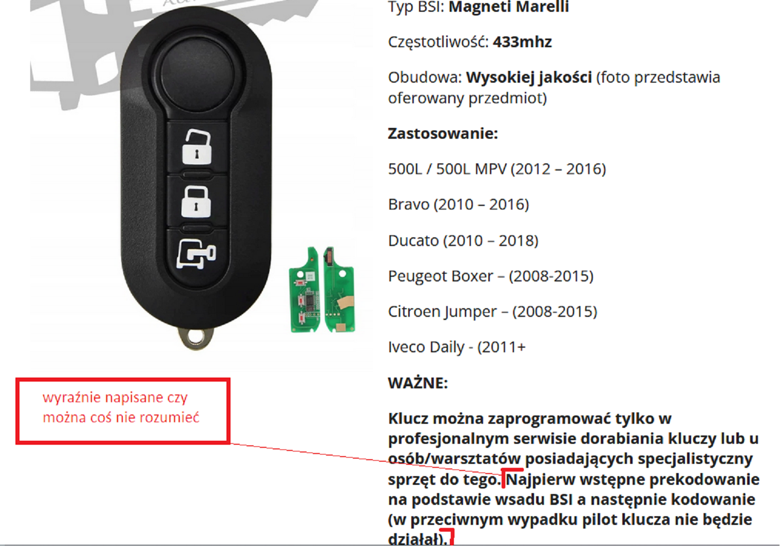 W trakcie programowania - oryginalny klucz został rozpoznany przez auto, a przy nowym kluczyku wyświetlił się komunikat że nie został on rozpoznany ale mimo to dało się kontynuować - gdzie na końcu wywalił błąd.
