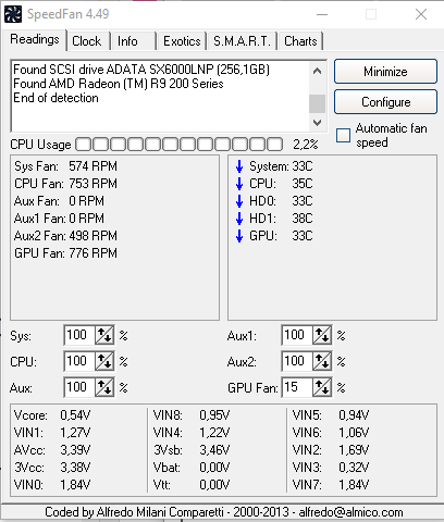 Temperatury: 35 CPU, 33 GPU