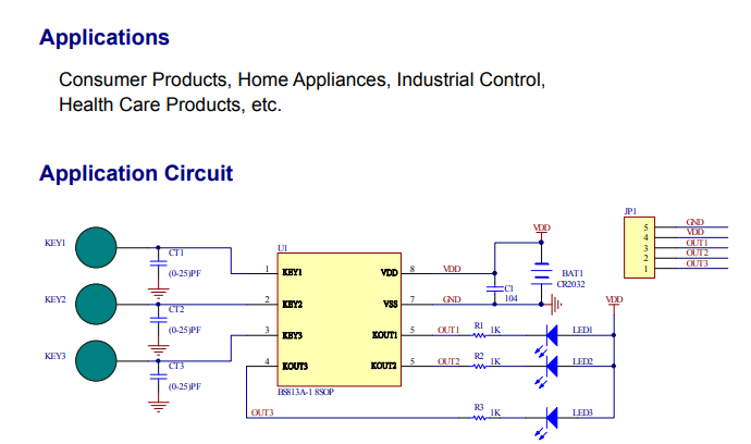 BS813A to kontroler przycisków dotykowych, produkcja Holtek.