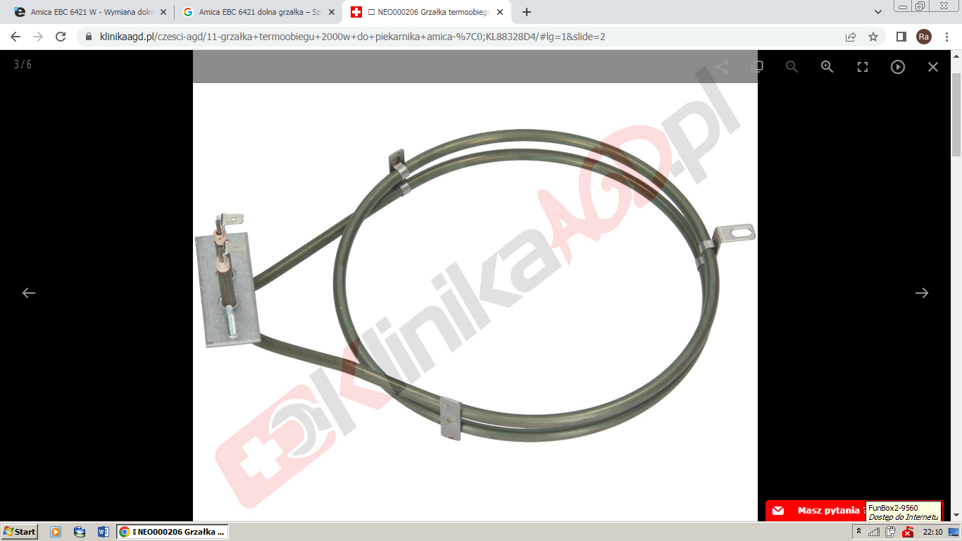 Padła mi grzałka w piekarniku Amica EBC 6421 W. Odkręciłem tylną ściankę, odsunąłem izolację termiczną (watę) i dotarłem do pacjenta. W teorii wystarczy odłączyć kable, odgiąć takie 2 "uszka" trzymające kołnierz i wysunąć grzałkę.